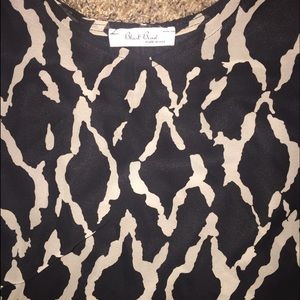 Cream and black silky tunic. Great for fall. I wore this with leggings but it also can be worn alone. Has a tie belt. And boho sleeves.