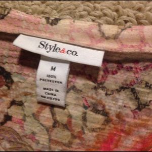 Multi colored with rinstones to jazz it u . Lower bottom to wear w/leggings .Pleaded back of bottom