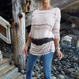 Light peach crocheted tunic or dress. feminine and sexy! (Does not come with belt) Available S/ M and M/L