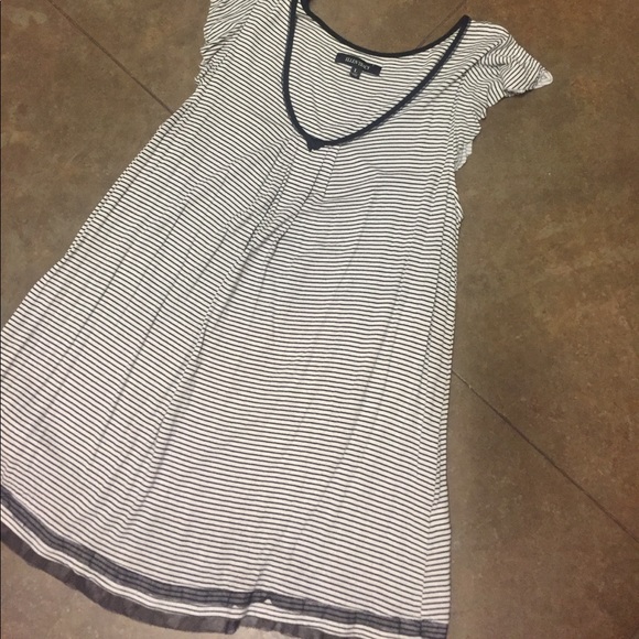 Black white stripe oh so comfy tunic, cool edge bottom trim