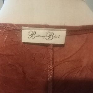 This is a beautiful rosy wine tunic with fabulous bell sleeves. The sleeved are approximately 20 inches long. The front length from neckline to hem is 23 inches and the back length is 26 inches to hem. The shirt has great texture. It is a poly blend (but tags were removed) and machine washable. It is lightweight and great for the spring months. Gently worn twice. Smoke free home.
