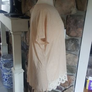 Beautiful roomy bo-ho style tunic. Back hem is lower than the front hem which is trimmed with a gorgeous lace band. Never worn.. but tags are missing. Size 1XL.