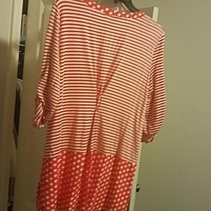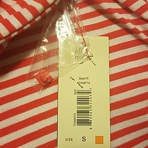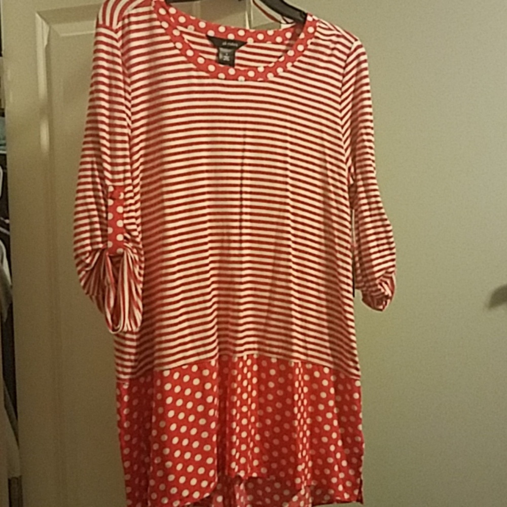 NEVER BEEN WORN orange and white tunic. Runs a little large so if a medium fits you this tunic would be great for you. Good to wear with leggings!