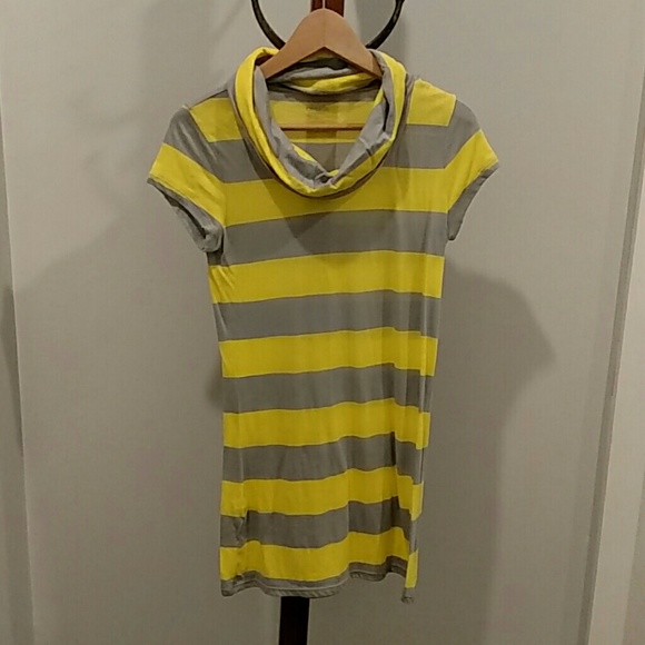 Yellow and gray striped cowl neck tunic