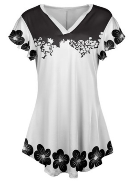 Black and white tunic comes mid thigh and looks great with skinny jeans and leggings