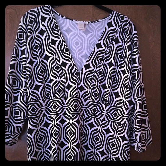 Super cute Tunic with the pattern that crosses the middle for a flattering look. Great condition. Smoke free home