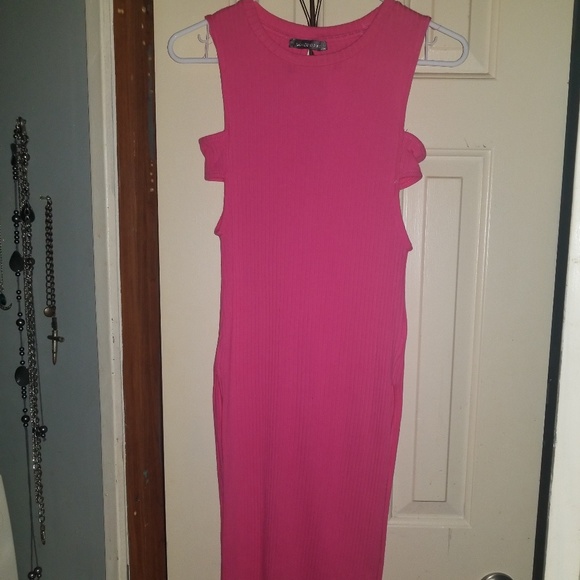 Pink, below the the knee length, key hole in the back