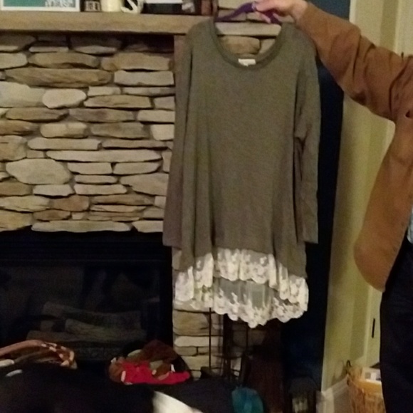 Preety olive colored sweater with delicate cream colored lace. Ma Any reasonable offer will be accepted!!
