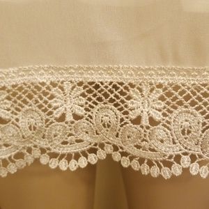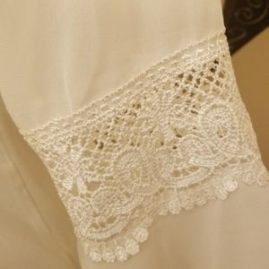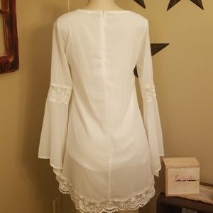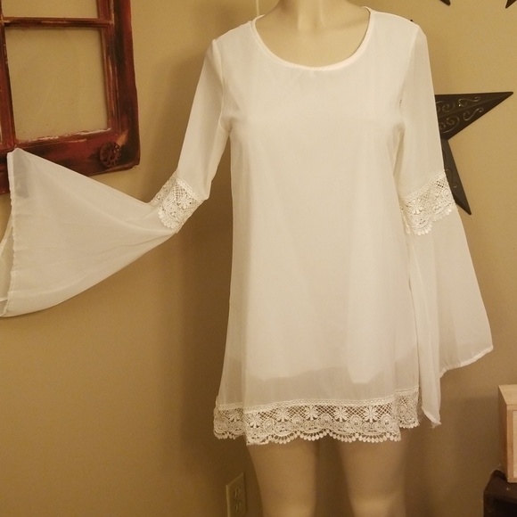 Beautiful sheer white flowy tunic zipper on back with lace. Tiny area shown where material has pulled away. Easily stitched. Worn once