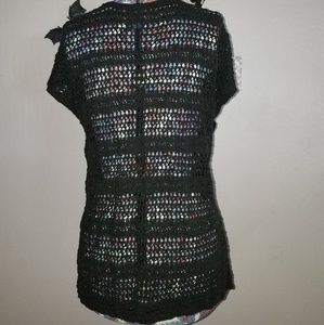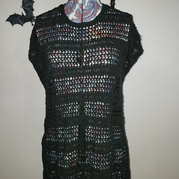 Short description: mini sleeve, loose fitting mesh/knit blouse/tunic