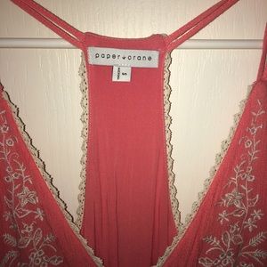 Very cute! Could be worn with pants, or without. This falls mid-thigh on me and I’m 5’5”. T-back tank. Questions welcome!