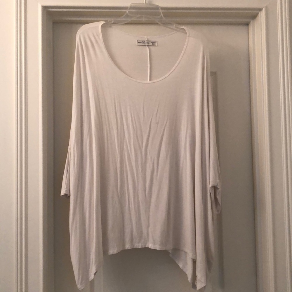 White tunic. Sides are longer than middle. There are a few flaws only from washing (see photo), but they are not noticeable