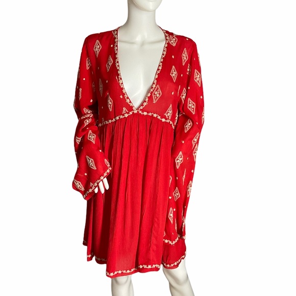 BNWT, authentic, embroidered bell sleeves, deep V-neck, back keyhole. Length 34”, 24” chest, sleeves 27”.
