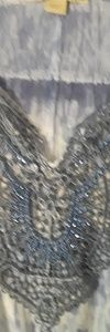 Beautiful assorted blue colored tunic with abstract hem. Has a gorgeous trimmed neckline.