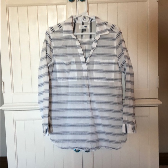 Fun blue and white striped sheer tunic top. Can be layered with cami or worn as a swim cover up. Excellent condition, never worn.