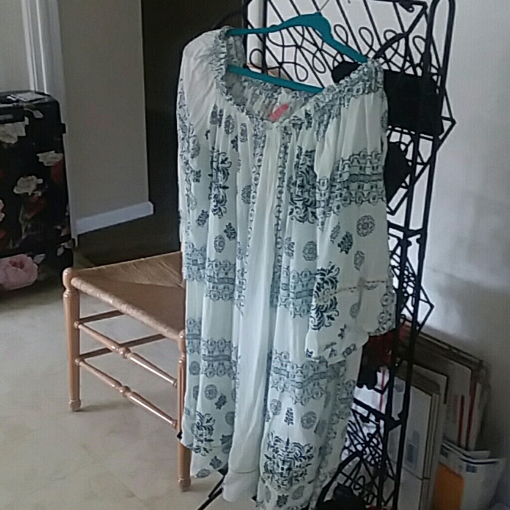 Blue n cream gauzy top