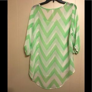 CL 22. Size L. Lime Green & Cream, Chevron, Boutique Top.