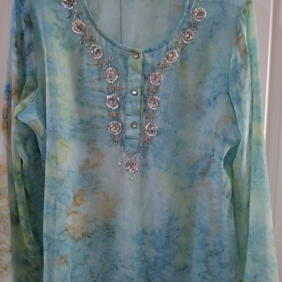 Beautiful , transparent ,lightweight ,Tunic. Nice fit ,casual/work, Summery