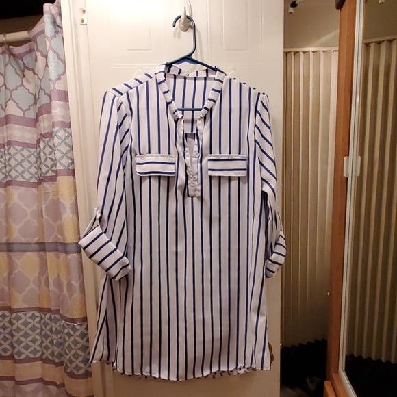 Pretty white and blue striped tunic. Like new. Smoke free home.