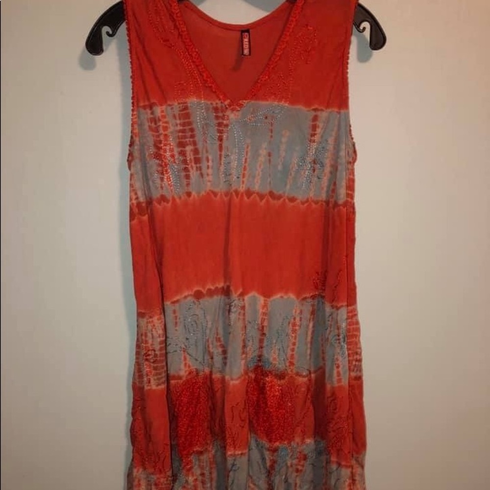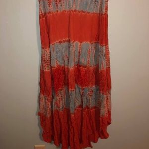 High-low tunic. “Free Size”. I’d say it could fit anyone from a small to X-large.