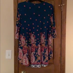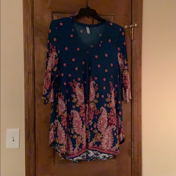 This tunic is so so cute. It is stretchy and long enough for leggings. Super soft and very comfy. No pet/no smoking home.