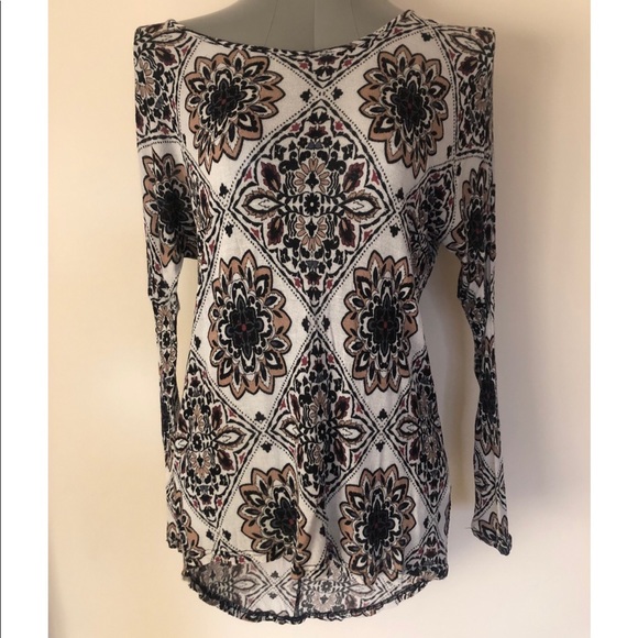 Long sleeve very thin tunic like top, long, great to wear with leggings! Zipper in the back at the top!