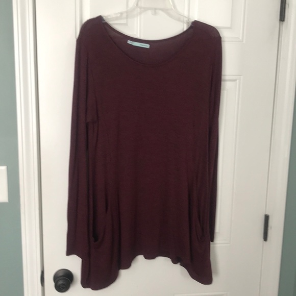 Burgundy and black light sweater material tunic dress with pockets
