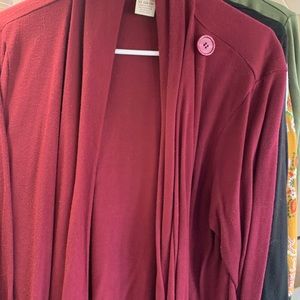 Two shoulder button wrap sweaters One black One burgundy