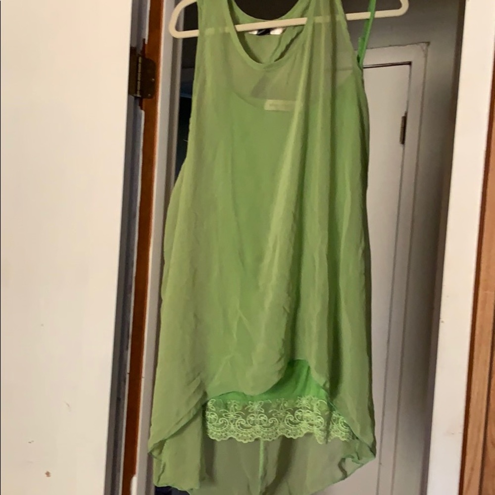 Two pieces top is sheer , and under tank is soft with lace trim on the bottom