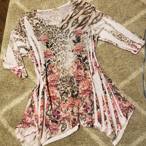 Multi-print Knit Tunic 3/4 sleeve Excellent New Condition