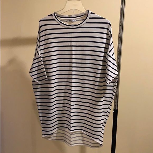 Striped tunic, short sleeve, high/low hem