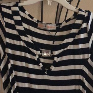 Very nice light weight tunic, goes out leggings skinny jeans. It has two front pockets and it’s in good condition, Colors are Navy and white
