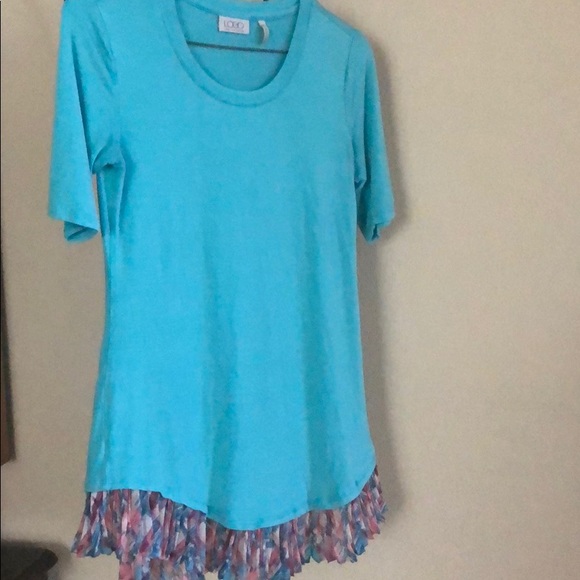 Nice tunic, very cute and soft an Also very comfortable. In great condition . the color is TURQUOISE very pretty