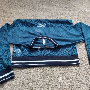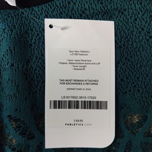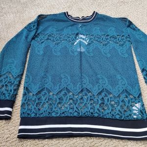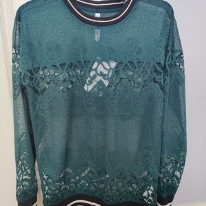 Dark green color. Sporty look, perfect will jeans , short. Stylish. New. Semi- sheer floral lace, striped, ribbed bottom and cuff. Relaxed fit. Size xs/4