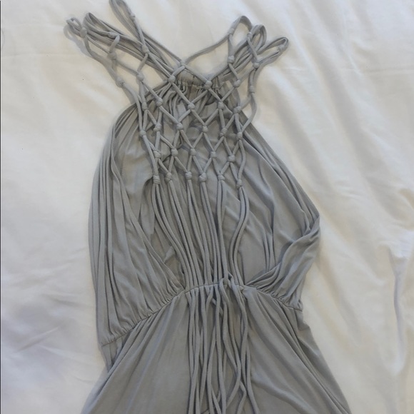 Gray, strappy, low cut in the back, very sexy back pattern, tunic top