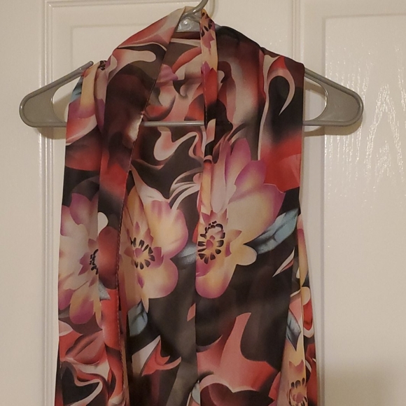 A floral tunic with black tassels on the bottom.