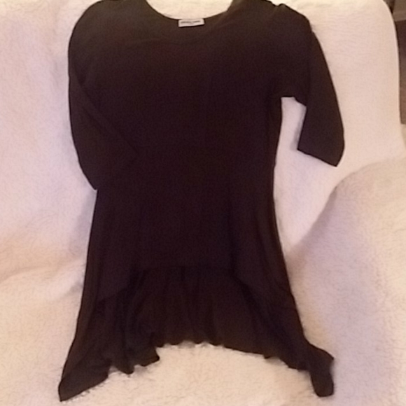 Great condition! Dark olive green tunic, high low, sharkbite hem, 3/4 sleeves, fitted. Perfect w/ leggings!