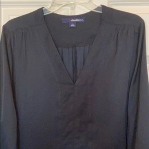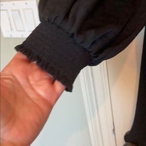 Polyester material tunic with elastic at bottom of sleeves and lower in back