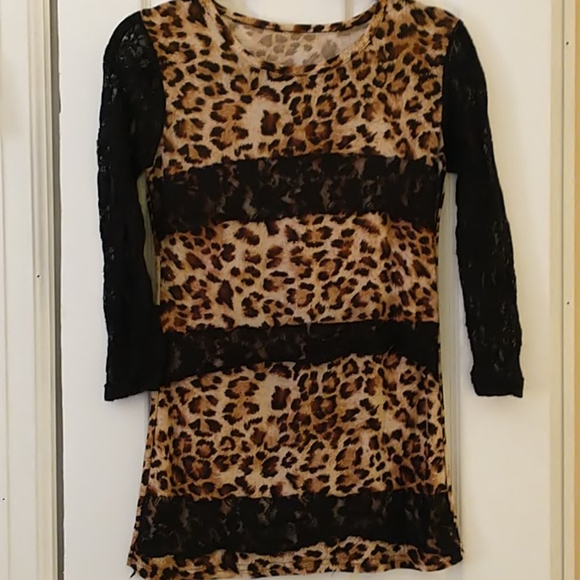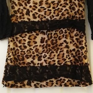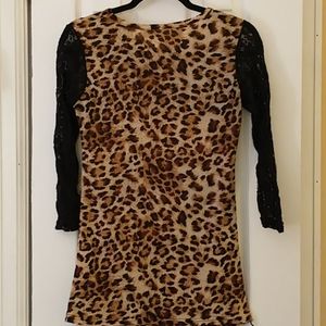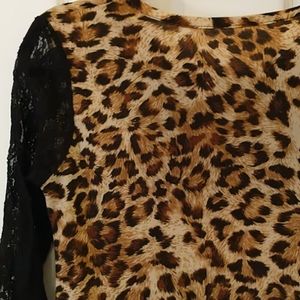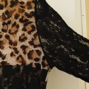 Tiered material of cheetah and black lace gives this cute tunic no need for any accessories! Black lace sleeves add that little extra so all you need to do is decide skinny jeans? Leggings? Or those thigh-high boots you know will turn heads!