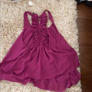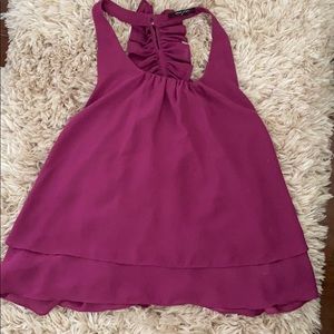 Purple tunic with ruffle detail on the back. Size small, excellent condition