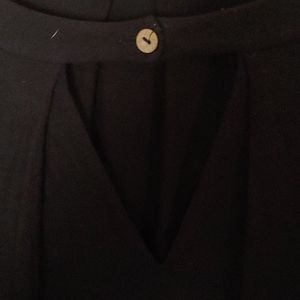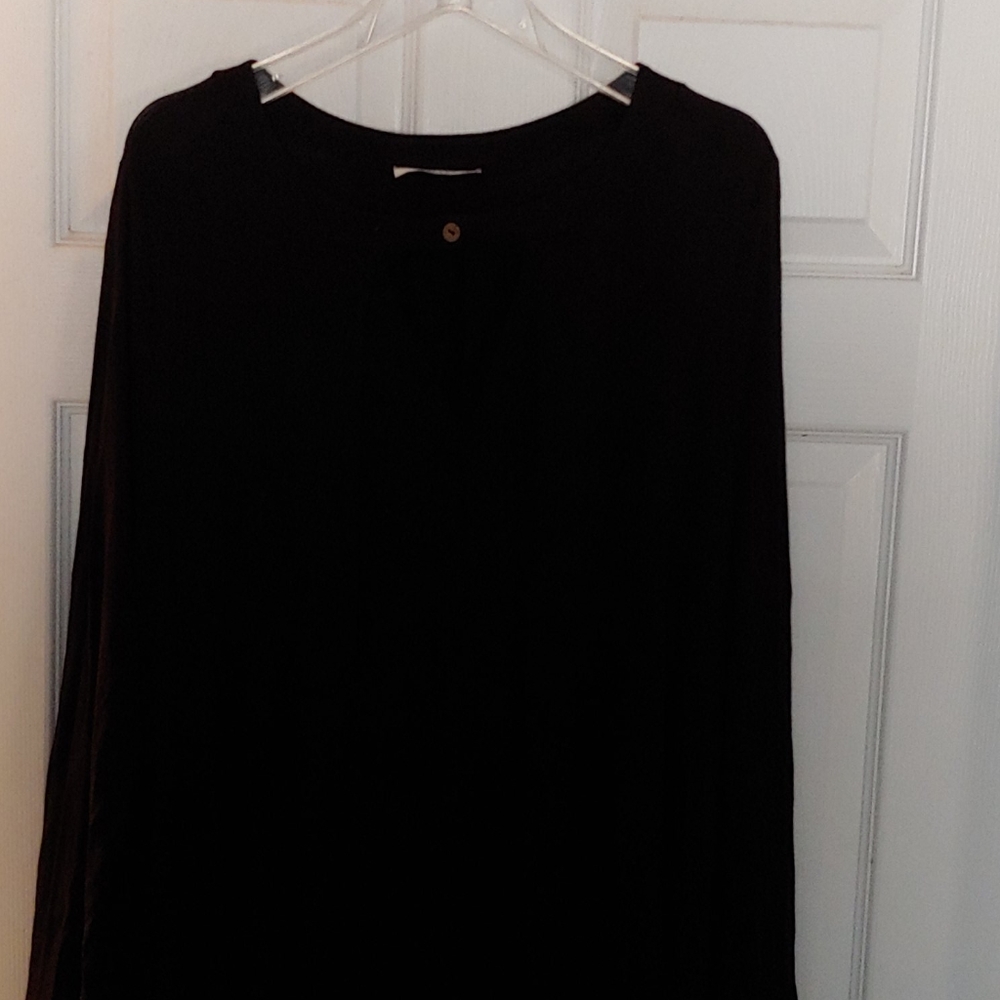 Slight bell long sleeve, V cut-out button neck-line, shark-bite hem.