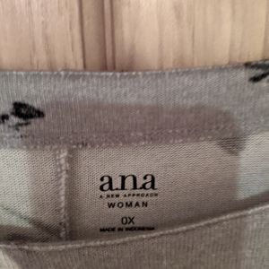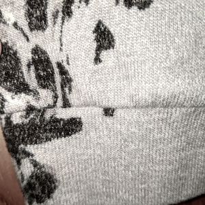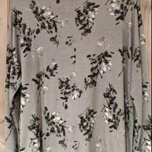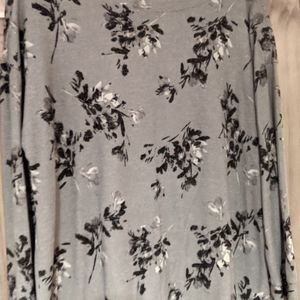 Comfortable, stretchy grey tunic with black and white floral print. Has button accents on left shoulder. Long enough to pair with your favorite leggings, also looks great with jeans. Super soft. Worn once.