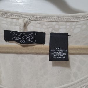 Cream colored lined tunic. Lace/polyester crochet look. 3/4 button tab sleeves. 100% polyester. Great condition.