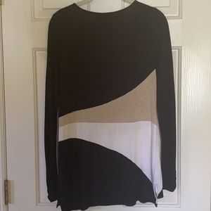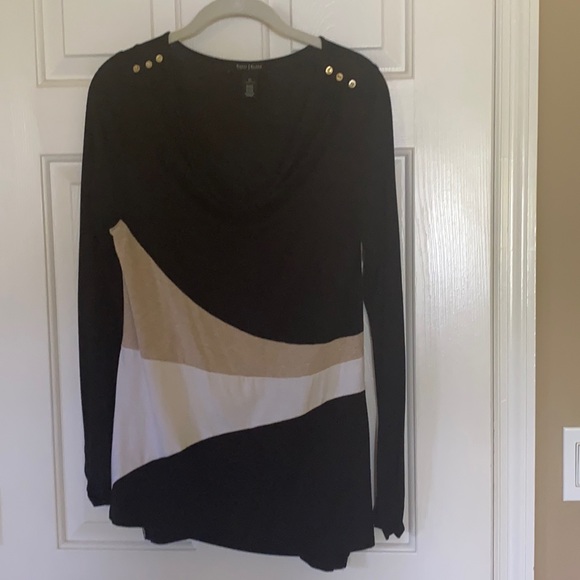 Color blocked tunic top from White House Black Market. Black white and tan, size XS. Long sleeved lightweight fabric with cowl neck. I love this with white jeans.