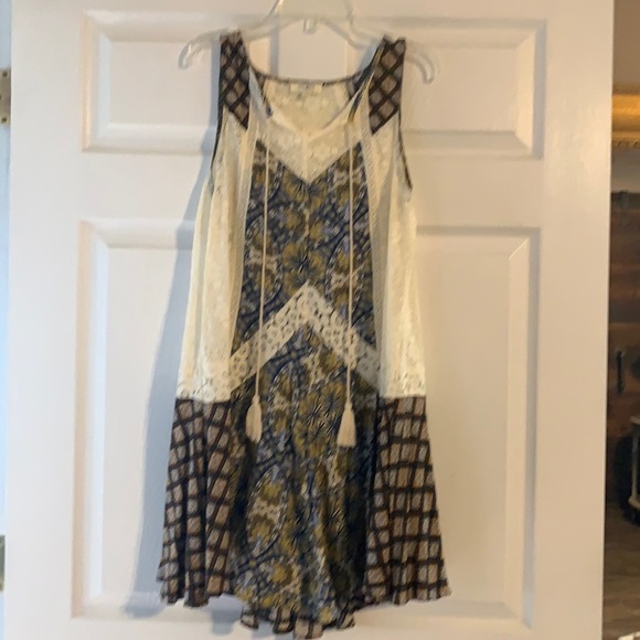 This is an Umgee tunic top. It’s lacy with a tassel tie at the neck. It’s cute with leggings, jeans, or some could wear it as a dress.