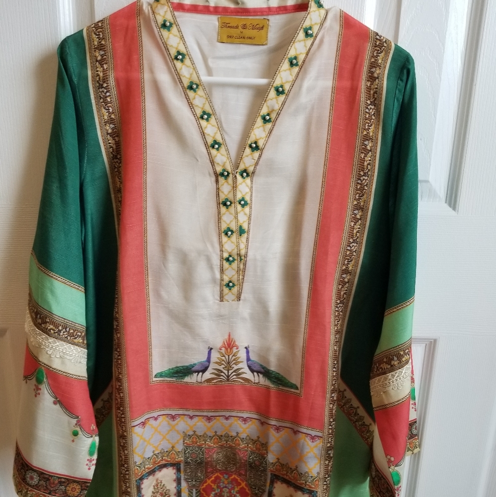 Beautiful viscose silk tunic from Threads & Motifs. Vibrant colors. Never worn. It is great for summer evenings.