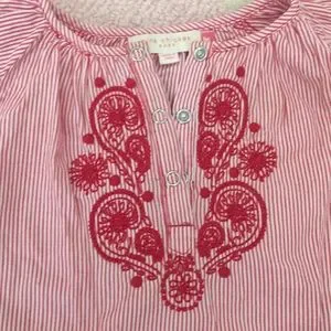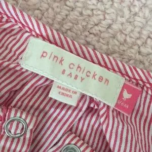 Red and white striped dress/tunic for 3-6 month old. My kid wore it at3/6 months as a dress and it became a tunic the older she got. She received compliments every time she wore this beautiful piece 😍 I’ve only handwashed it and there are no visible stains or signs of wear. It is simply stunning and I wish it came in adult sizes.