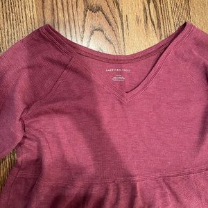 Cranberry colored Tunic, 3 tiered shirt. Loose fit. Though its a size small, it is big in fit. Could fit Medium or Large size