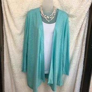 Spring green tunic with 3/4 sleeves and a sharkbite hem. 100% cotton. Gently used.