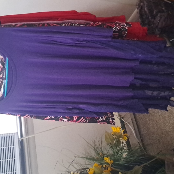 Brand new, Tunic 3/4 Back, Color Midnight Violet, lace flowers on back drop midi, machine wash cold, delicate cycle, separately, Size L-18/20